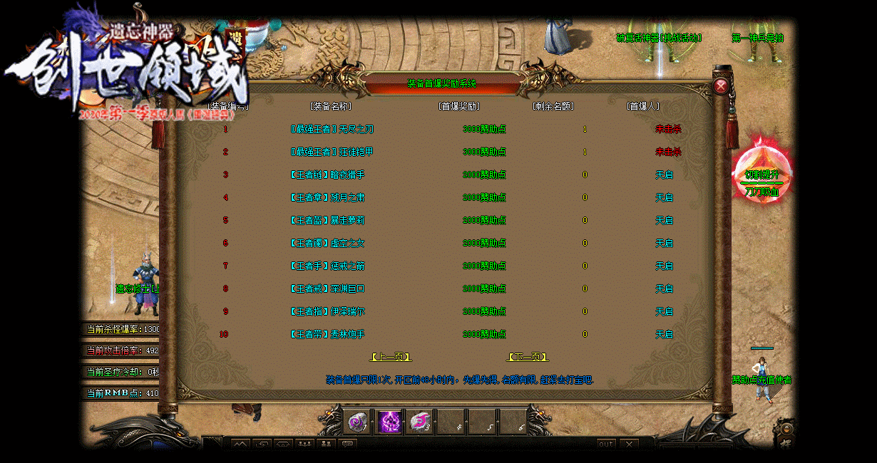 - 【超高爆率】:告别传统吹牛B!本服上限2倍爆率起步!区区爆率更有递增!